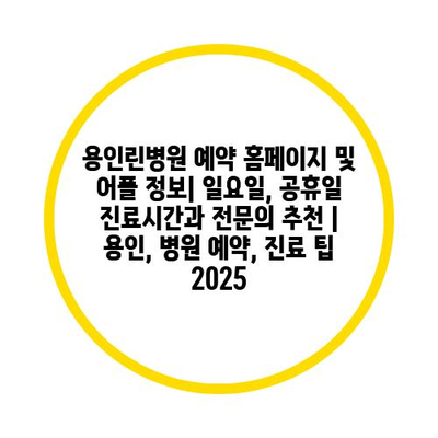 용인린병원 예약 홈페이지 및 어플 정보| 일요일, 공휴일 진료시간과 전연락 추천 | 용인, 병원 예약, 진료 팁 2025