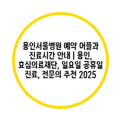 용인서울병원 예약 어플과 진료시간 공지 | 용인, 효심의료재단, 일요일 공휴일 진료, 전연락 추천 2025 에 대해 자주 묻는 질문 TOP 5