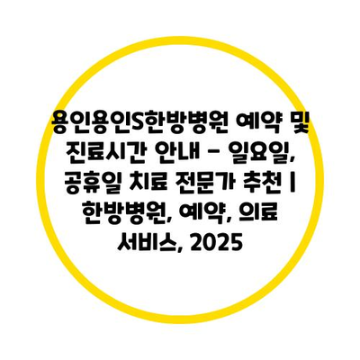 용인용인S한방병원 예약 및 진료시간 공지 – 일요일, 공휴일 치료 전문가 추천 | 한방병원, 예약, 의료 서비스, 2025 에 대해 자주 묻는 질문 TOP 5