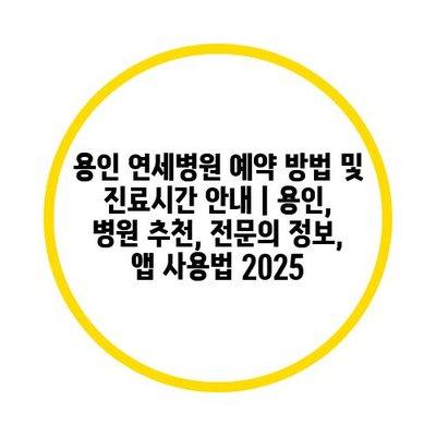 용인 연세병원 예약 방법 및 진료시간 공지 | 용인, 병원 추천, 전연락 정보, 앱 사용법 2025 에 대해 자주 묻는 질문 TOP 5
