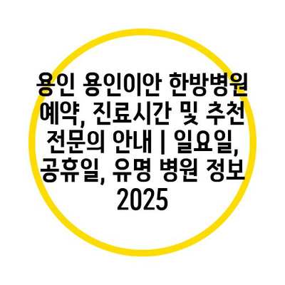 용인 용인이안 한방병원 예약, 진료시간 및 추천 전연락 공지 | 일요일, 공휴일, 유명 병원 정보 2025