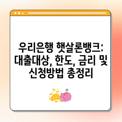 우리은행 햇살론뱅크: 대출대상, 한도, 금리 및 신청방법 총정리
