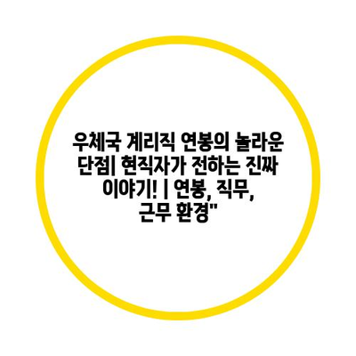 우체국 계리직 연봉의 놀라운 단점| 현직자가 전하는 진짜 이야기! | 연봉, 직무, 근무 환경”