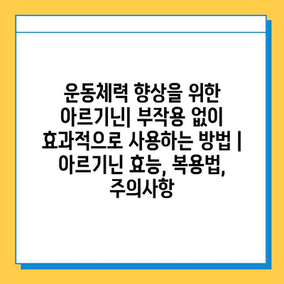 아르기닌으로 운동 효과를 극대화하고 싶다면? 부작용 없이 안전하게 사용하는 방법을 알아보세요!