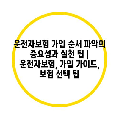 운전자보험 가입 순서 파악의 중요성과 실천 팁 | 운전자보험, 가입 설명서, 보험 선택 팁 에 대해 자주 묻는 질문 TOP 5