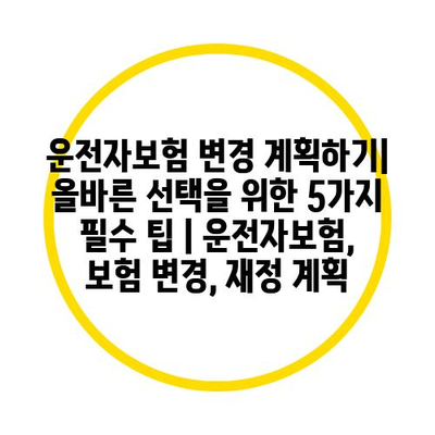 운전자보험 변경 계획하기 | 올바른 선택을 위한 5가지 필수 팁 | 운전자보험, 보험 변경, 재정 계획
