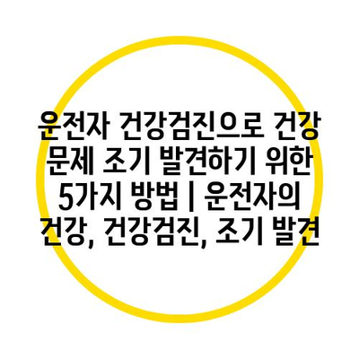 운전자 건강검진으로 건강 문제 조기 발견하기 위한 5가지 방법 | 운전자의 건강, 건강검진, 조기 발견