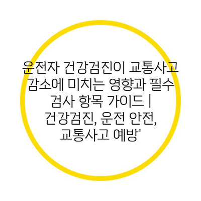 운전자 건강검진이 교통사고 감소에 미치는 영향과 필수 검사 항목 설명서 | 건강검진, 운전 안전, 교통사고 예방