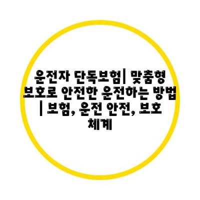 운전자 단독보험| 맞춤형 보호로 안전한 운전하는 방법 | 보험, 운전 안전, 보호 체계 에 대해 자주 묻는 질문 TOP 5