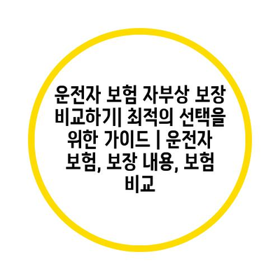 운전자 보험 자부상 보장 비교하기| 최적의 선택을 위한 가이드 | 운전자 보험, 보장 내용, 보험 비교