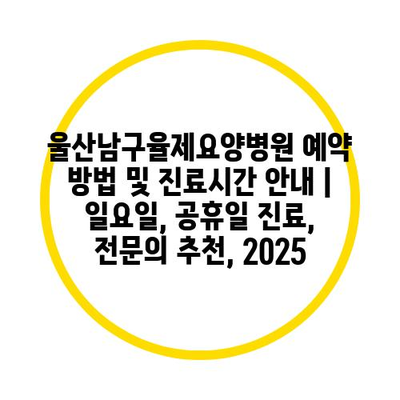 울산남구율제요양병원 예약 방법 및 진료시간 안내 | 일요일, 공휴일 진료, 전문의 추천, 2025