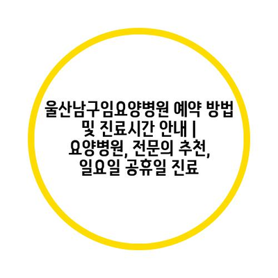 ✅ 울산남구임요양병원의 진료시간과 예약 방법을 지금 바로 알아보세요.