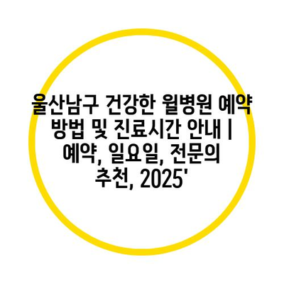 울산남구 건강한 윌병원 예약 방법 및 진료시간 공지 | 예약, 일요일, 전연락 추천, 2025′ 에 대해 자주 묻는 질문 TOP 5