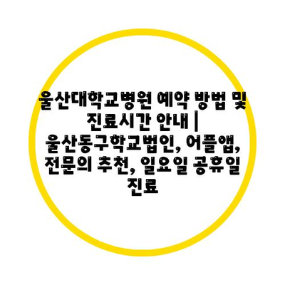 울산대학교병원 예약 방법 및 진료시간 안내 | 울산동구학교법인, 어플앱, 전문의 추천, 일요일 공휴일 진료