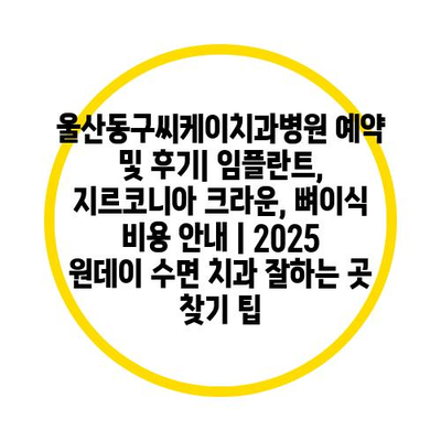 울산동구씨케이치과병원 예약 및 후기| 임플란트, 지르코니아 크라운, 뼈이식 비용 공지 | 2025 원데이 수면 치과 잘하는 곳 찾기 팁 에 대해 자주 묻는 질문 TOP 5