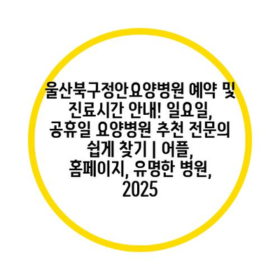 울산북구정안요양병원 예약 및 진료시간 공지! 일요일, 공휴일 요양병원 추천 전연락 쉽게 찾기 | 어플, 홈페이지, 유명한 병원, 2025 에 대해 자주 묻는 질문 TOP 5