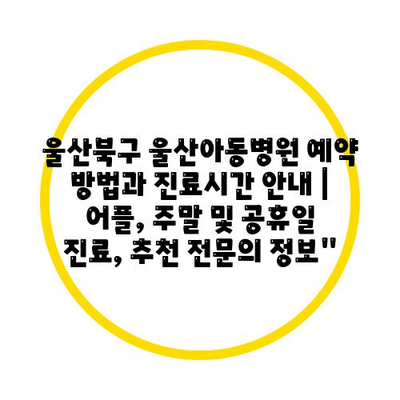 울산북구 울산아동병원 예약 방법과 진료시간 안내 | 어플, 주말 및 공휴일 진료, 추천 전문의 정보”
