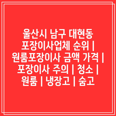 질문. 울산시 남구 대현동 지역에서 가장 믿을 수 있는 포장이사업체의 순위는 어떻습니까?