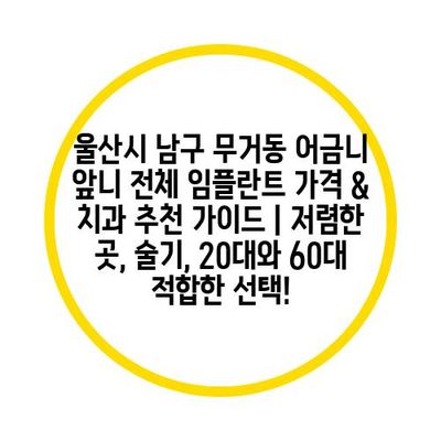 울산시 남구 무거동 어금니 앞니 전체 임플란트 가격 & 치과 추천 설명서 | 저렴한 곳, 술기, 20대와 60대 적합한 선택!