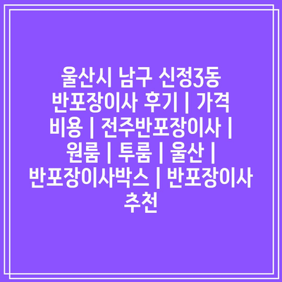 반포장이사를 하시려면 울산시 남구 신정3동의 신뢰할 수 있는 반포장이사 업체를 찾는 것이 중요합니다. 이 글에서는 저의 최근 반포장이사 후기를 공유하고, 가격 비용, 전문성, 그리고 반포장이사박스 사용 경험에 대해 자세히 설명하겠습니다.