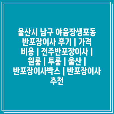 ✅ 울산시 남구 야음장생포동 반포장이사에 대한 진짜 후기와 비용 가이드를 확인하세요.