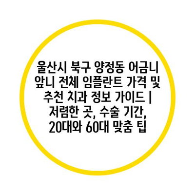 울산시 북구 양정동 어금니 앞니 전체 임플란트 가격 및 추천 치과 정보 가이드 | 저렴한 곳, 수술 기간, 20대와 60대 맞춤 팁
