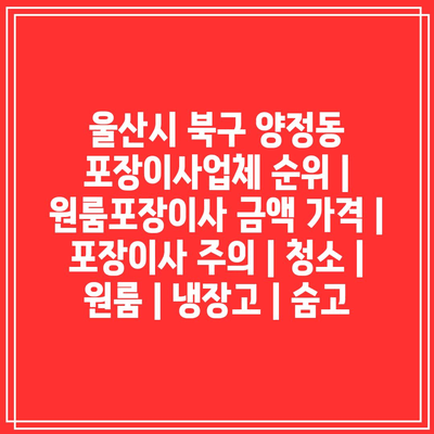 울산시 북구 양정동에서 믿을 수 있는 포장이사업체를 찾고 계신다면 제 글이 도움이 될 것입니다.