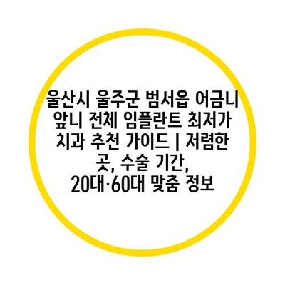울산시 울주군 범서읍 어금니 앞니 전체 임플란트 최저가 치과 추천 가이드 | 저렴한 곳, 수술 기간, 20대·60대 맞춤 정보