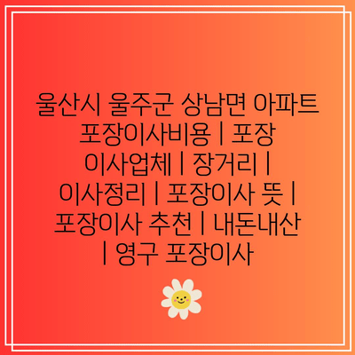 울산시 울주군 상남면 아파트 포장이사비용 | 포장 이사업체 | 장거리 | 이사정리 | 포장이사 뜻 | 포장이사 추천 | 내돈내산 | 영구 포장이사 에 대해 자주 묻는 질문 TOP 5