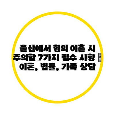 울산에서 협의 이혼 시 주의할 7가지 필수 사항 | 이혼, 법률, 가족 상담 에 대해 자주 묻는 질문 TOP 5