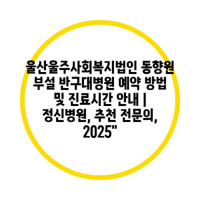 울산울주사회복지법인 동향원 부설 반구대병원 예약 방법 및 진료시간 공지 | 정신병원, 추천 전연락, 2025″ 에 대해 자주 묻는 질문 TOP 5