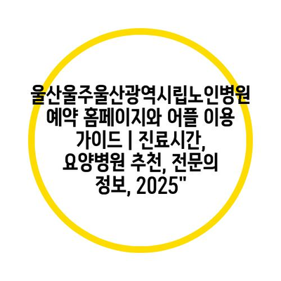 ✅ 2025년 울산광역시립노인병원 예약 방법을 알아보세요.