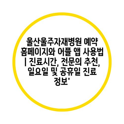✅ 울산울주자재병원의 예약 방법과 진료 시간을 빠르게 확인해 보세요.
