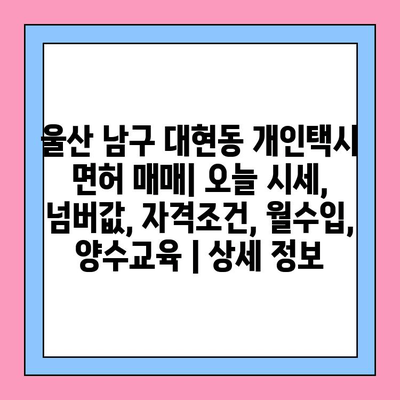 울산 남구 대현동 개인택시 면허 매매 시세, 넘버값, 자격 조건, 월수입, 양수 교육 등 상세 정보를 알아보세요.