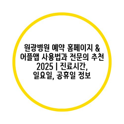원광병원 예약 홈페이지 & 어플앱 사용법과 전문의 추천 2025 | 진료시간, 일요일, 공휴일 정보