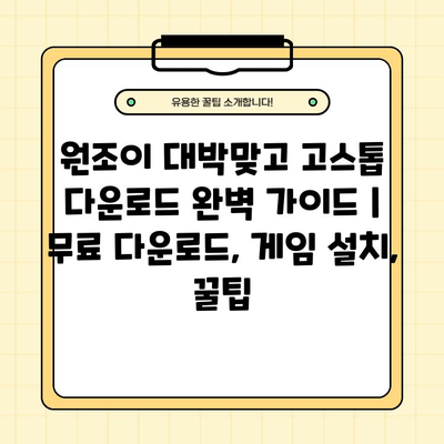 ✅ 원조이 고스톱 무료로 즐기는 꿀팁! 지금 바로 확인하세요! 😎