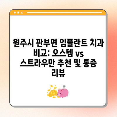 원주 판부면 임플란트 치과 비교 및 추천에 대한 통증, 수면, 오스템, 스트라우만 리뷰를 제공합니다. 임플란트 치료의 장점과 추천 치과도 소개합니다.