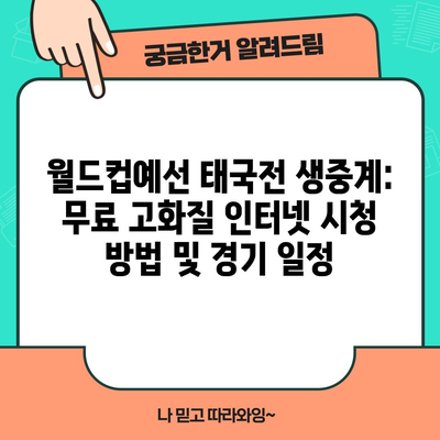 월드컵예선 태국전 생중계: 무료 고화질 인터넷 시청 방법 및 경기 일정