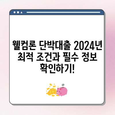 💡 웰컴론 단박대출의 조건과 혜택을 빠르게 알아보세요. 💡