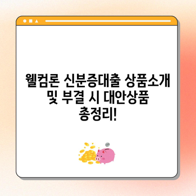 Meta Description: 웰컴론 신분증대출 상품설명 및 부결 시 대안상품에 대해 자세히 알아보세요. 소득 및 신용이 부족한 분들을 위한 다양한 대출 옵션을 소개합니다.