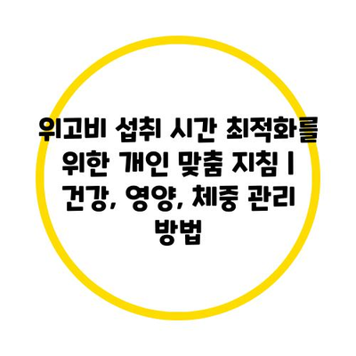 위고비 섭취 시간 최적화를 위한 개인 맞춤 방법 | 건강, 영양, 체중 관리 방법
