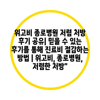 위고비 종로병원 저렴 처방 후기 공유| 믿을 수 있는 후기를 통해 진료비 절감하는 방법 | 위고비, 종로병원, 저렴한 처방