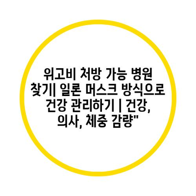 “위고비 처방을 위한 병원 목록과 위치 공지는 건강 관리의 첫 걸음입니다.”
