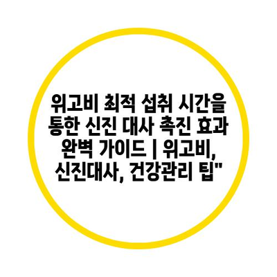위고비 최적 섭취 시간을 통한 신진 대사 촉진 효과 완벽 설명서 | 위고비, 신진대사, 건강관리 팁