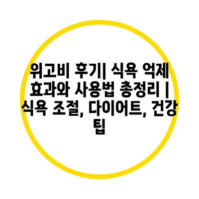 위고비 후기| 식욕 억제 효과와 사용법 총정리 | 식욕 조절, 다이어트, 건강 팁 에 대해 자주 묻는 질문 TOP 5