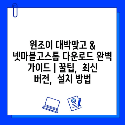 윈조이 대박맞고 & 넷마블고스톱 다운로드 완벽 가이드 | 꿀팁, 최신 버전, 설치 방법