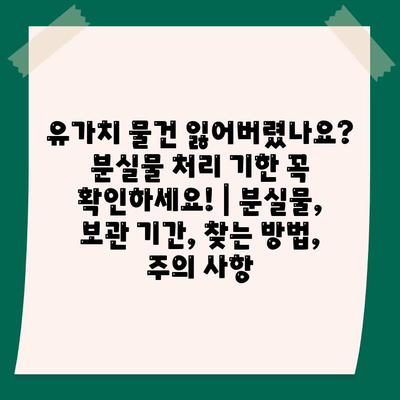 유가치 물건 잃어버렸나요? 분실물 처리 기한 꼭 확인하세요! | 분실물, 보관 기간, 찾는 방법, 주의 사항