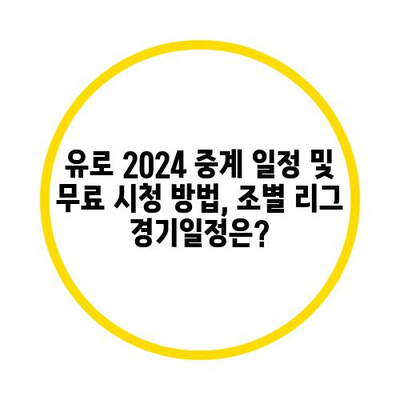 💡 유로 2024 중계 일정과 무료 시청 방법을 지금 바로 알아보세요! 💡