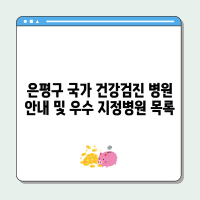 은평구 내의 우수 지정병원에서 건강검진을 받을 수 있으며, 각 병원은 다양한 검진 프로그램을 제공합니다.