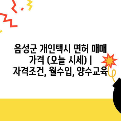 ✅ 음성군 개인택시 면허, 생각보다 비싸다고? 지금 바로 시세 확인하세요!